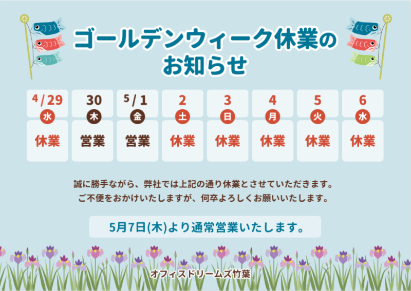 ゴールデンウィーク休業日のお知らせ